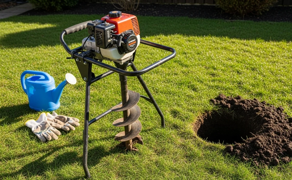 A grande vantagem? O trabalho que levaria 20 minutos na cavadeira manual, o perfurador resolve em menos de 30 segundos, protegendo sua coluna e multiplicando sua produtividade.